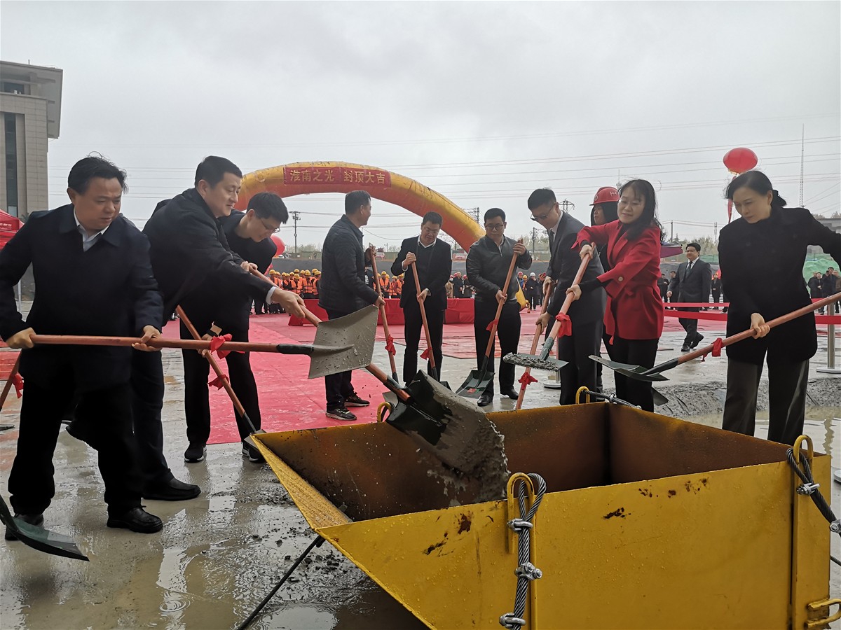 在宣布住宅樓正式封頂后,出席儀式的相關領導和嘉賓共同舉行澆筑儀式。