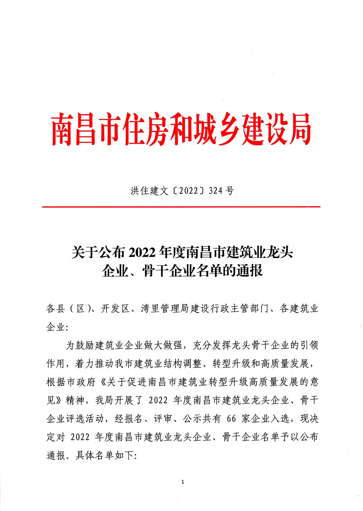 近日,我市住房和城鄉建設局組織開展的2022年度南昌市建筑業龍頭企業、骨干企業的評選活動落下帷幕。通過企業資質、產值稅收、質量安全、獎勵表彰、科技創新、經營管理、社會責任等多方面評比,華泰建設工程有限公司憑借優異的綜合實力獲評“2022年度南昌市建筑業骨干企業”榮譽稱號。